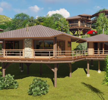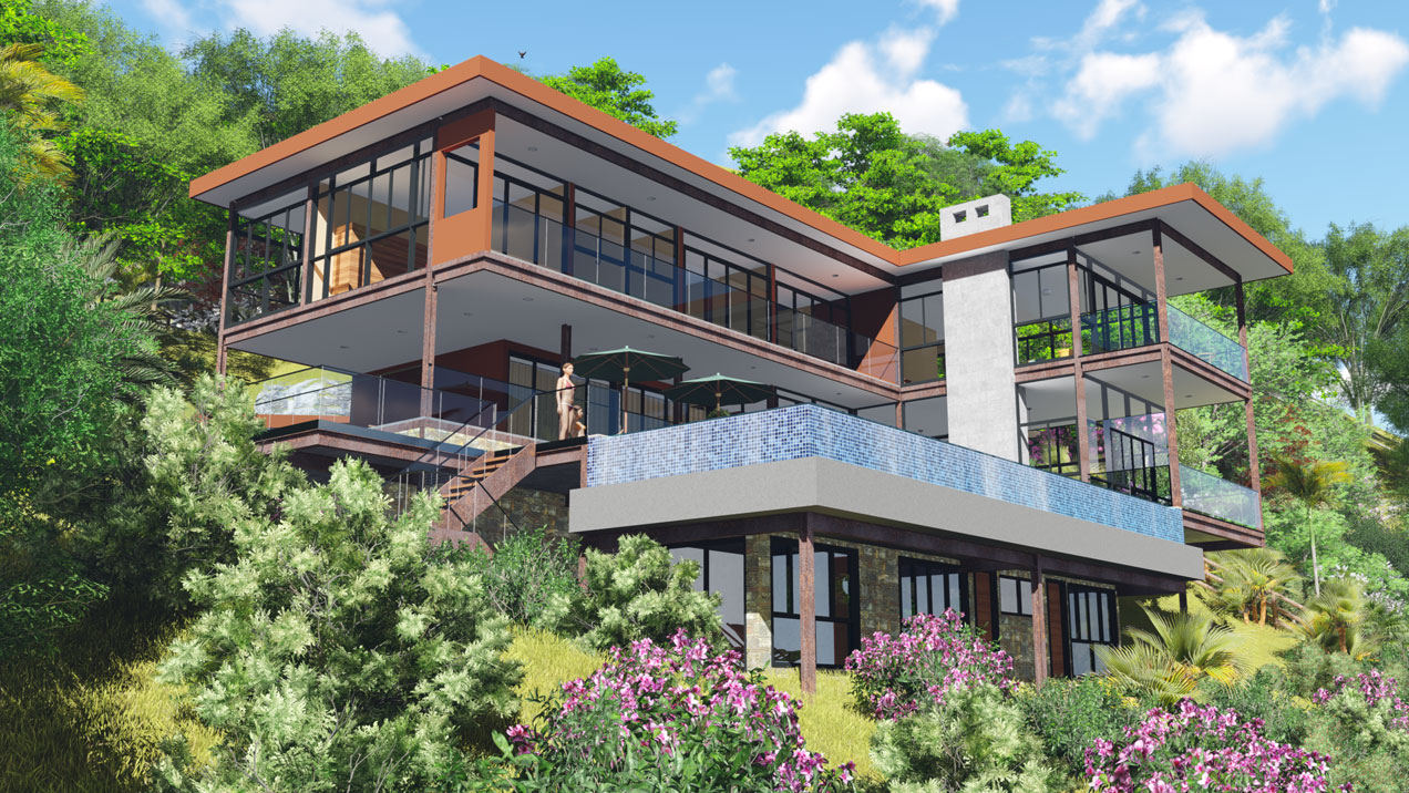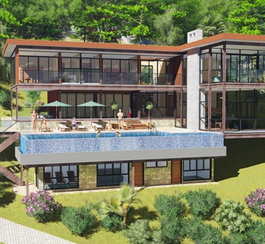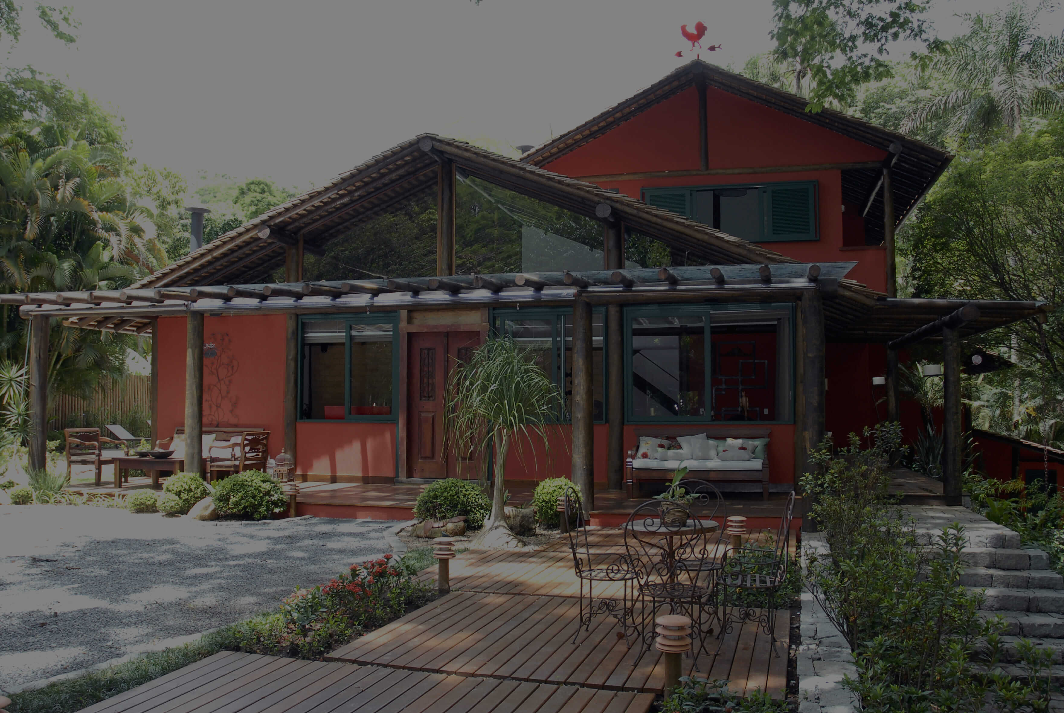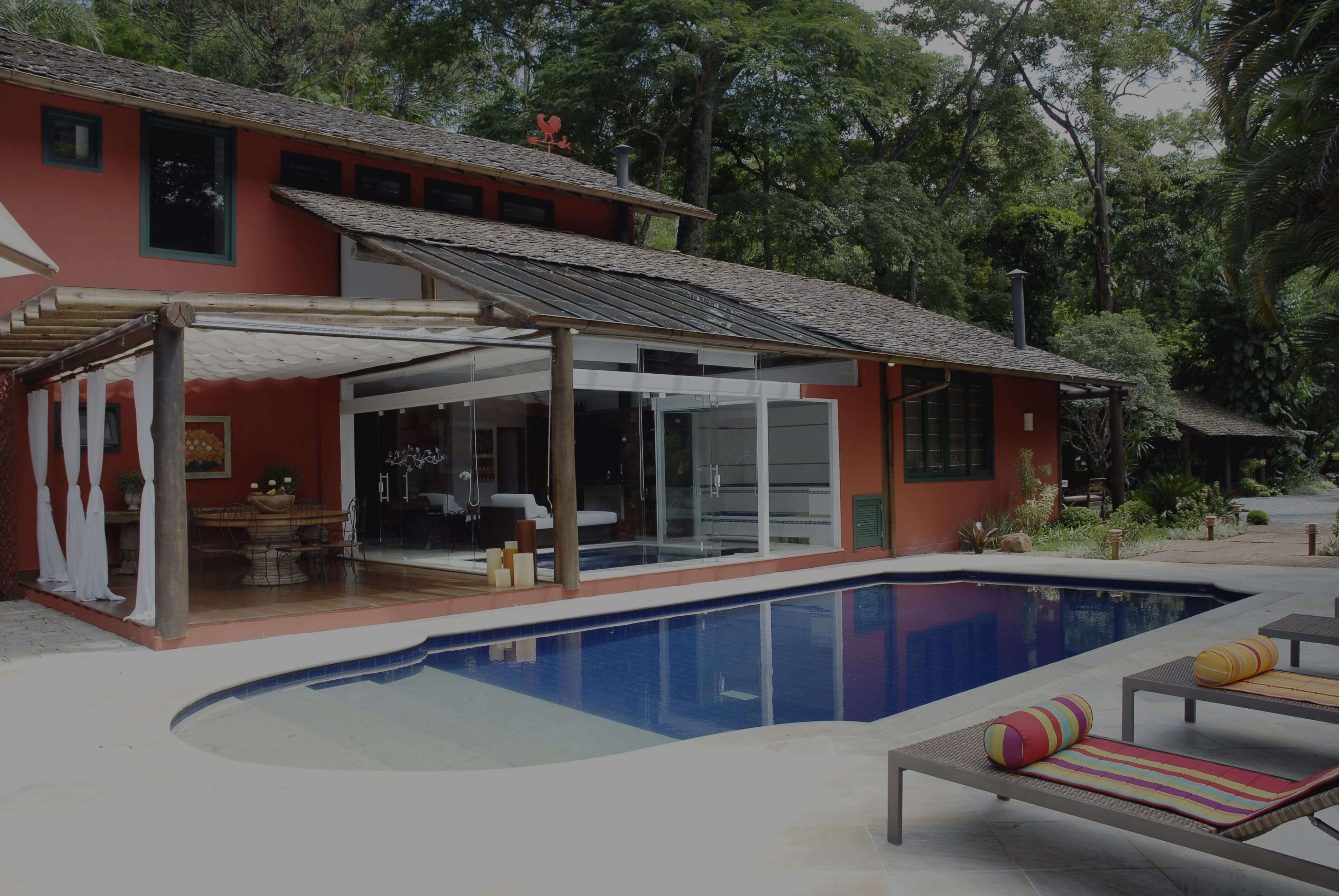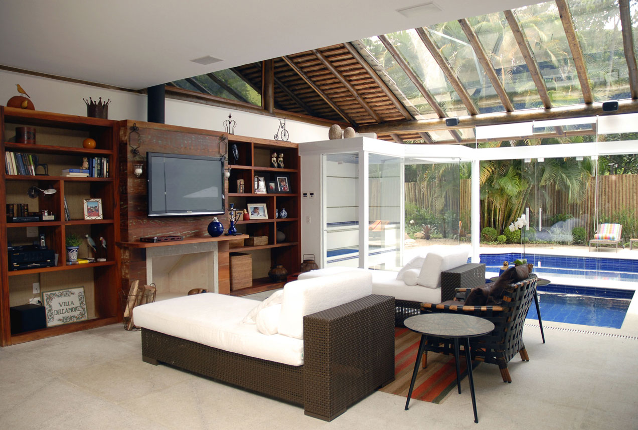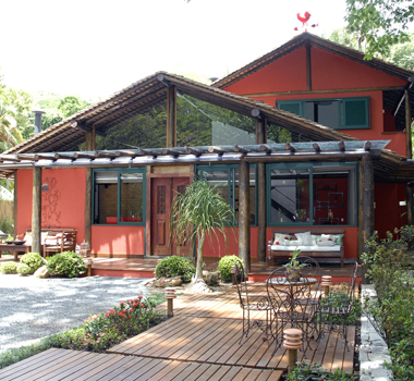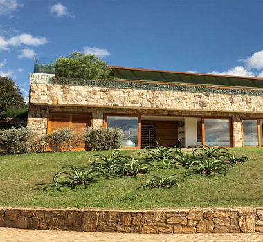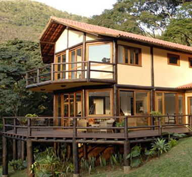 O recorte criativo confere leveza à construção de 300 mts2. Na arquitetura desta casa, destaca-se a escada que se abre para a paisagem através de sua parede de vidro e interliga os três pavimentos.